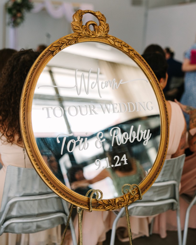 “Highly recommend Poppy Event Rentals for their amazing mirror seating chart service! They made the process incredibly easy – I just sent my table assignments and they handled everything, including setup and teardown. This saved me so much time and stress compared to DIYing and transporting my own chart. Their pricing was cost-effective, and I also had them create matching table signage which gave everything a beautifully cohesive look. Perfect solution for anyone planning a wedding who wants professional results without the hassle!”