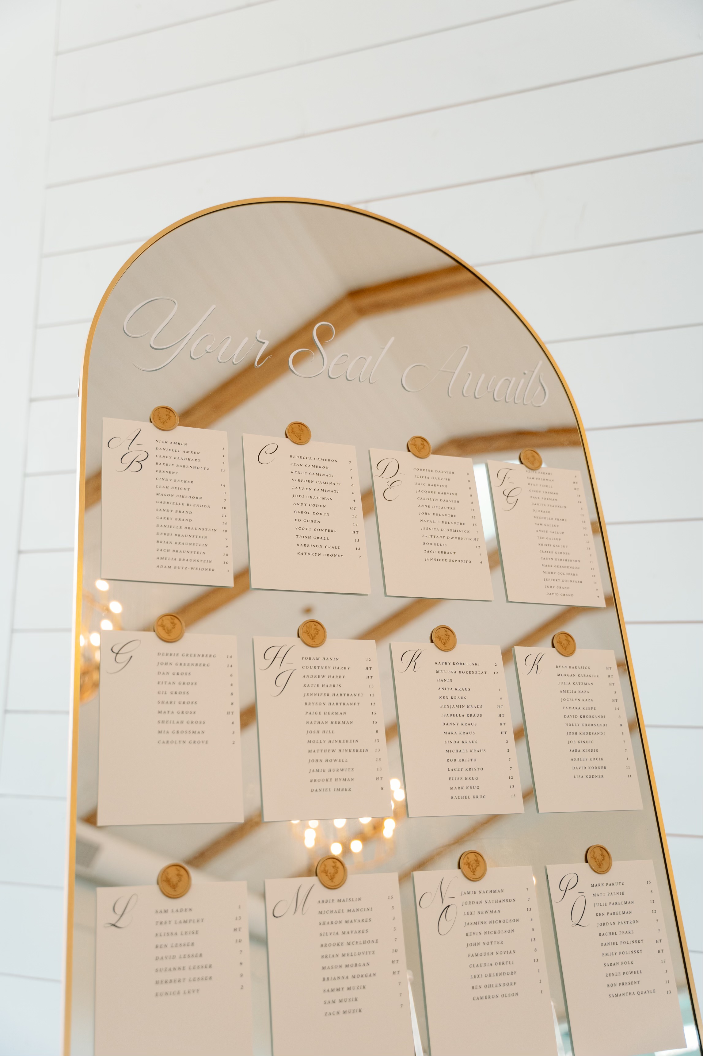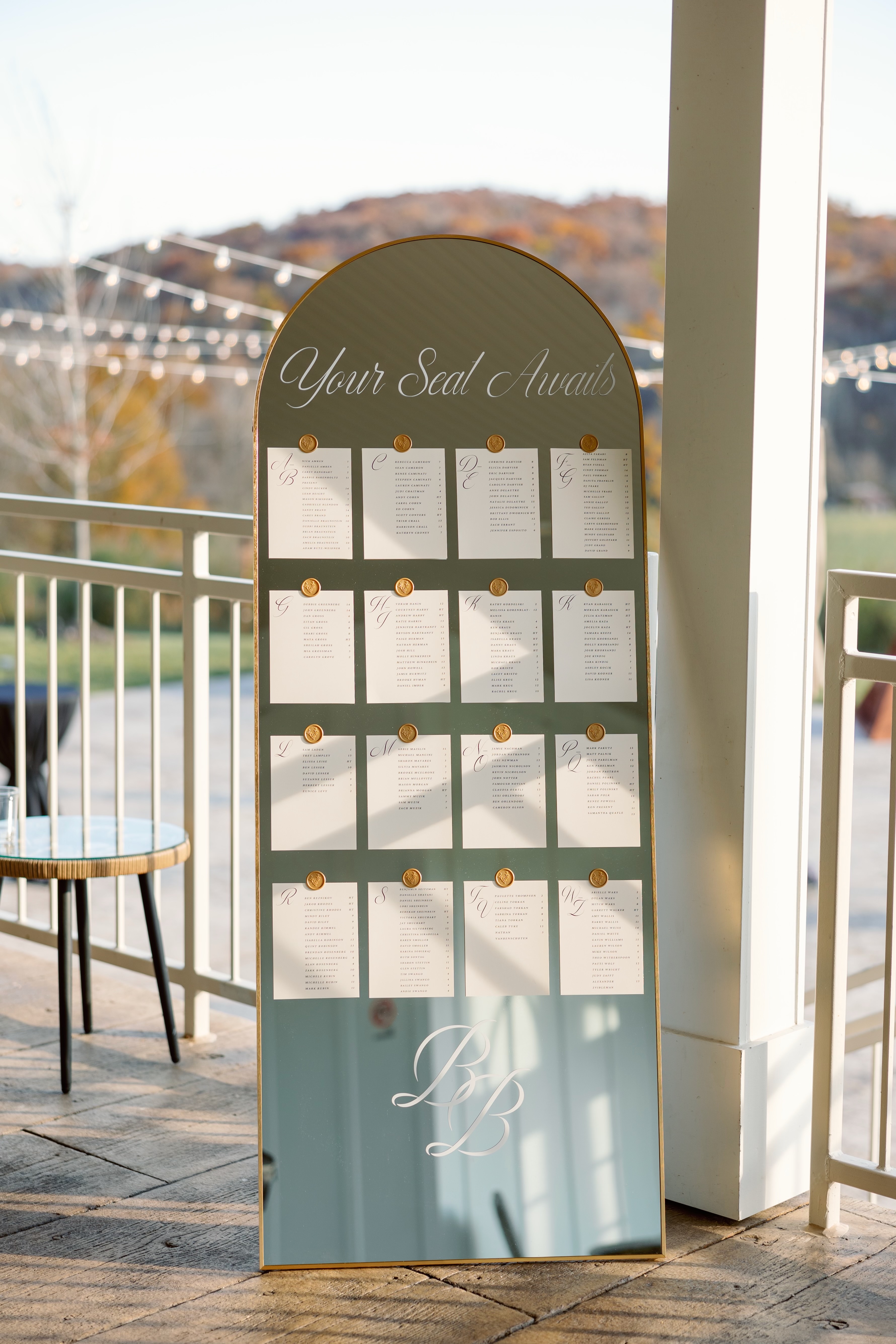 Let us handle your guest lists with our elegant seating chart rentals! We use mirrors customized to match your style, creating a stunning and functional addition to your special event.