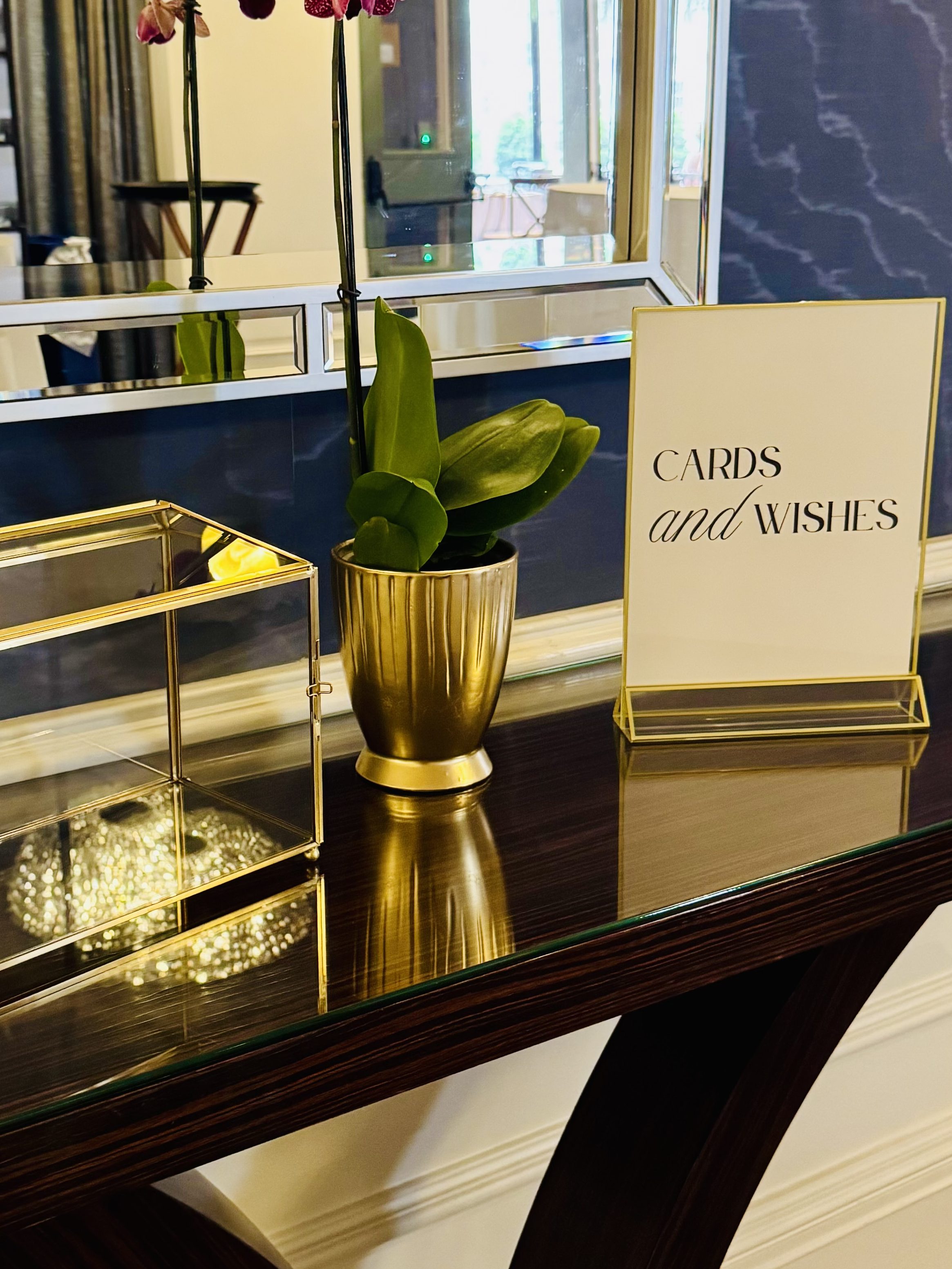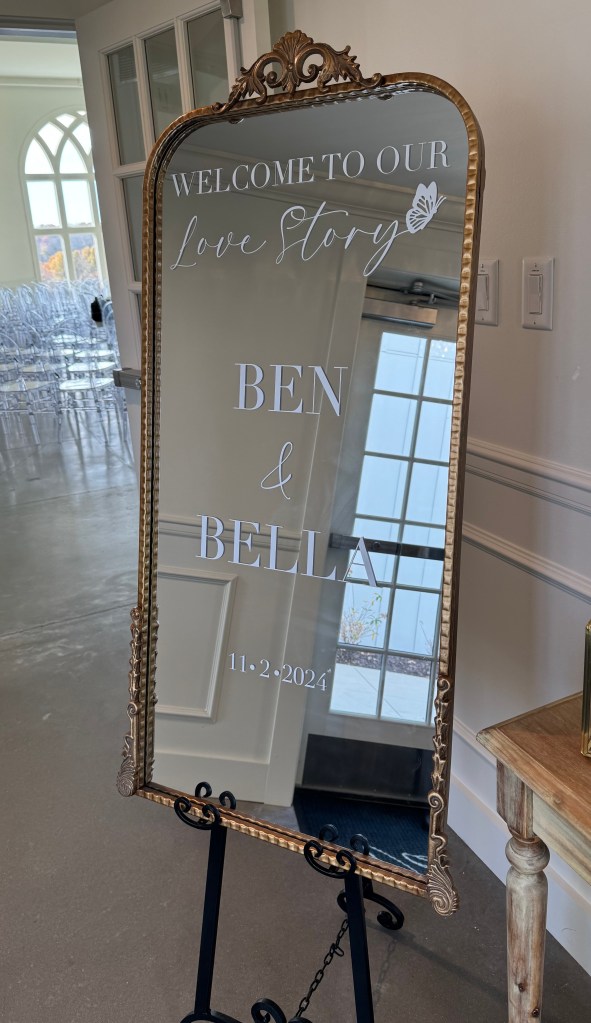 Welcome your guests in style with our personalized event signage rentals. Perfect for weddings, showers, birthdays, and more, these elegant signs can be created on mirrors or frames to match your event’s unique aesthetic. Let us help set the tone for your special day.